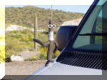 | Arizona New_Mexico Texas&Ok Kansas Missouri Illinois Indiana Ohio The Wedding Wedding_Thu Wedding_Fri Wedding_Sat Wedding_Sun Maryland Virginia Williamsburg_I Baltimore Williamsburg_II Delmarva Atlantic_Coast Savannah Sav_to_Hou Texas.htm Home Wine Links | What a great start to RT5! Well it wasn’t perfect because we got a late start due to waiting for the Cox Cable repair guy, Also we ran into a nasty, windy rain storm as we traversed the Tecate Pass on I-8, not too far east of San Diego. Then the wind was blowing like crazy, but it turned into a tail wind and we zipped across Imperial County and into Arizona in no time. We cut up US 85 at Gila Bend (check out the Space Age Motel!) and headed toward Phoenix.