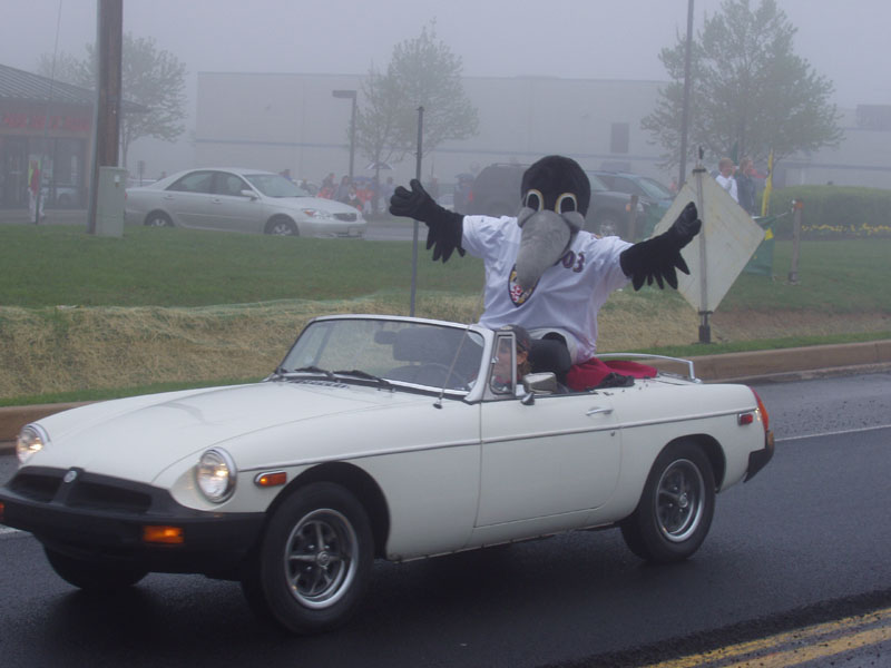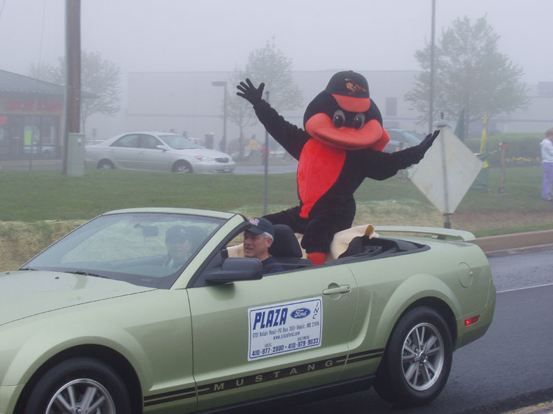 This is a big deal in Forest Hill. The bird is "POE". EDGAR and ALLEN couldn't make it. They are the mascots for the Baltimore Ravens.