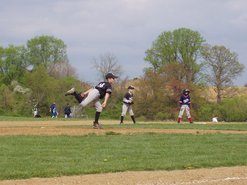 Jake follows through on a pitch.